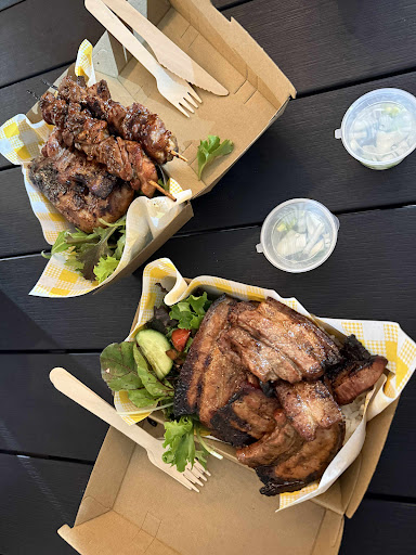 Our BBQ mixed grill offers a hearty feast that promises to satisfy even the largest of appetites. Featuring a tender Inasal quarter, three flavorful Liempo strips, plus a savory skewer of your choice, with rice salad and dressing.